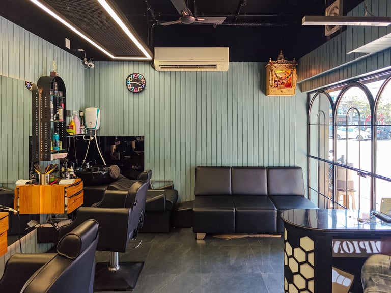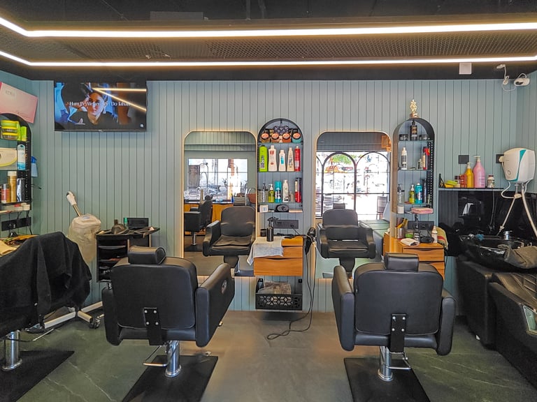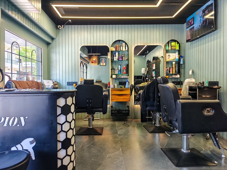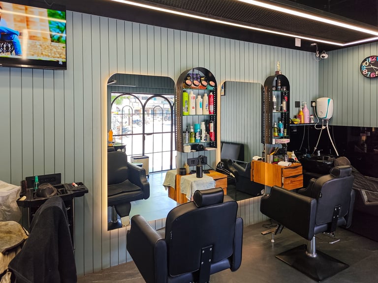 We designs smart and stylish barber shops with a fresh look, comfy chairs, and good lighting for a great customer feel.